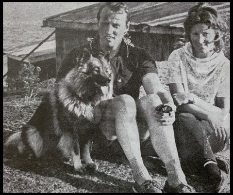 King Harald V of Norway as a prince with Queen Sonja and their Keeshond